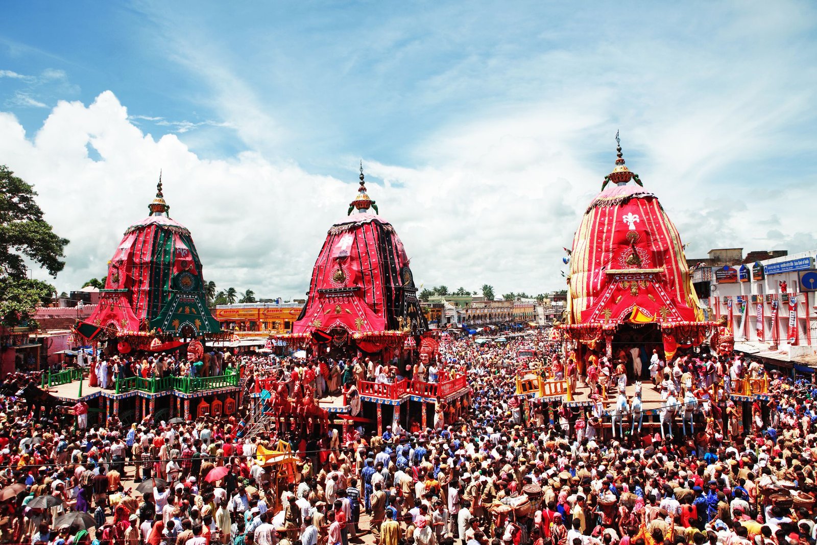 Key attractions: chariots with the idols of Lord Jagannath, Goddess Subhadra, and Lord Balabhadra are taken out on a chariot