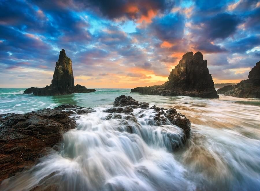 Mystics Beach has an elongated shape, stretching from the rocky headland all the way to the outcrop known as Stack Island. The stretch forms a sand spit with the estuary of Minnamurra River in the back. This is a very scenic area great for surfing, fishing, swimming, and camping.